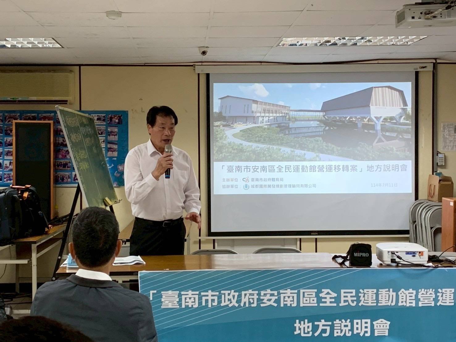 【透傳媒記者杜忠聰/臺南報導】為推動全民運動、提升市民健康及休閒品質,臺南市政府體育局於 114 年 7 月 11 日召開「臺南市政府安南區全民運動館營運移轉案」地方說明會,向地方居民及各界介紹規劃內容、未來發展定位及民間參與招商方向,並廣泛蒐集意見,力求打造符合地方需求的全民運動空間。