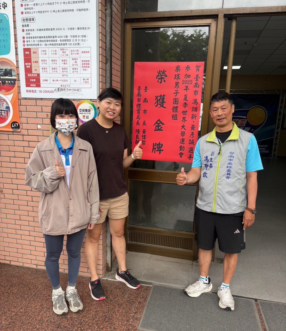 市長黃偉哲表示,臺南市十分重視運動選手在國際賽事中為國爭光的表現。得知本市桌球選手馮翊新、黃彥誠等代表臺灣參加 2025 年萊茵魯爾世界大學運動會,勇奪桌球團體賽歷史首面金牌後,第一時間便指示體育局張貼紅榜公開祝賀,感謝他們為臺灣與臺南爭光。他強調,臺南市的體育政策除獎助金制度外,還長期通過體能培訓補助、菁英選手培訓計畫、選手就學就業輔導等多項配套措施,從日常訓練到賽後獎勵,全方位支持選手發展,打造更健全的運動環境。