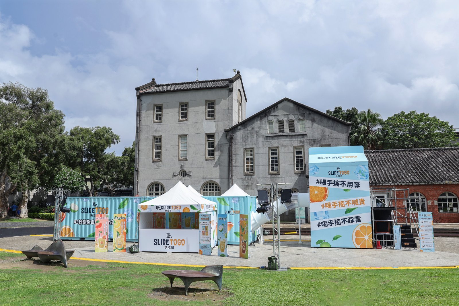 【透傳媒記者杜忠聰/廖蓓慈/綜合報導】華山文創園區近日現一座巨型溜滑梯裝置,吸睛度爆表,引發民眾與網友熱烈討論。不少人猜測是新品牌快閃、新茶飲開幕,話題迅速延燒。現場品牌牆上 “3 秒讓你拿到新鮮茶”“喝手搖 不踩雷” 等標語,預計將引爆手搖控打卡熱潮。