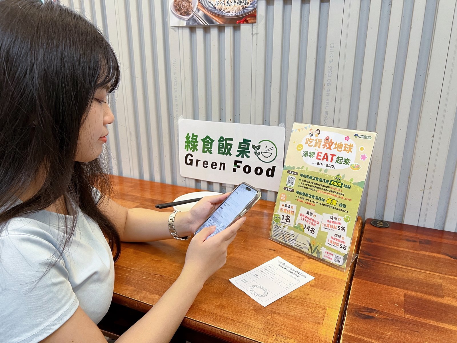 想加入綠食飯桌行列的業者,只要具備內用不提供一次性餐具、採用在地食材、推廣綠色飲食與惜食文化、倡導淨零綠生活並提供員工教育訓練等條件即可申請,詳情可洽(06)268-6751 分機 1323、1324。