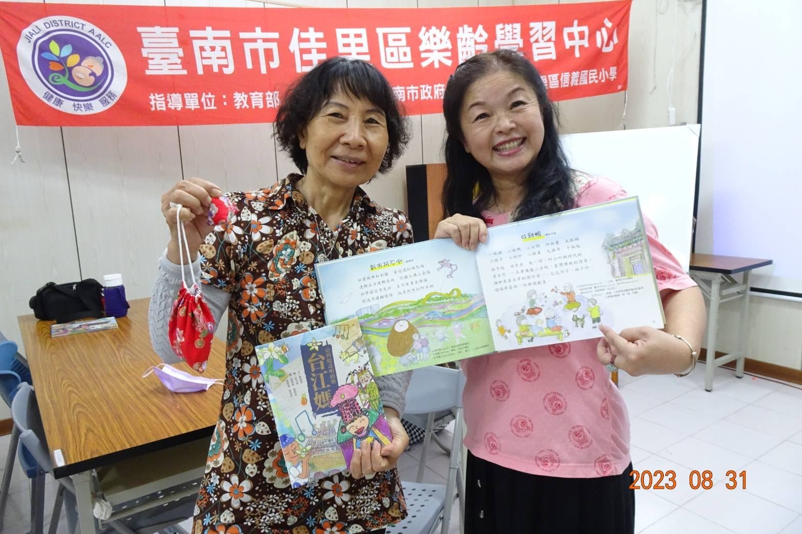 另外一位,就是樂衷推廣本土語口說藝術的劉惠蓉老師,經年累月不斷精進教學相長的她,總是笑容可掬親切的用台語對記者說:「台語若欲講會媠、講會正範端的(tuann-tiah) 撇步,就是愛倚去攏咧講台語的社區,佮當地的老大人開講話仙,按呢,台語絕對會講甲削削叫。」這次她更是大手筆的自費購買童玩沙包、響板,還有上回國立生活美學館活動設計的「台江媽」墊板,以及「柚見童玩 拍干樂」「台灣唸謠咱的歌 台江媽」有聲書,贈給積極參與學習的學員。