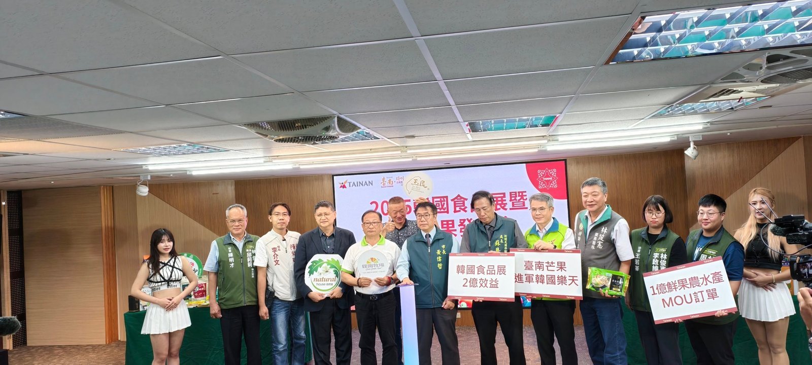 【透傳媒記者杜忠聰/臺南報導】臺南市政府近年積極推動愛文芒果、鳳梨等農水產品進軍韓國市場,在近期韓國食品展暨拓銷成果發表會上,市長黃偉哲與黃金蕎麥、綠園牧場、自然屋、鮮饌等參展廠商,向媒體分享韓國拓銷佳績:不僅韓國國際食品展期間促成近 2 億元新臺幣商機,更在首爾可樂市場簽署重量級 MOU,拿下 1 億元農水產採購訂單,為臺南農產拓展韓國市場再創高峰。