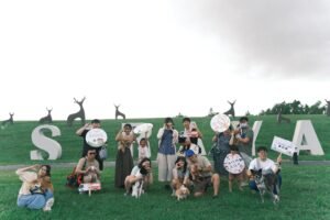 接著來到官田遊客中心,11 公頃的廣闊草原與獲美國繆斯國際設計大獎的「Tabe! Tabe! 仙境西拉雅」公共藝術相映成趣。西拉雅風管處還設寫真巴士,為毛孩與飼主定格溫馨瞬間。