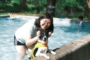 活動首站抵達善化「巴吉划水寵物泳池」,這裡有湖景、咖啡區、寵物泳池等多元設施。毛小孩見泳池便興奮嬉戲,在自然中釋放活力,飼主也借此增進與毛孩的情感。