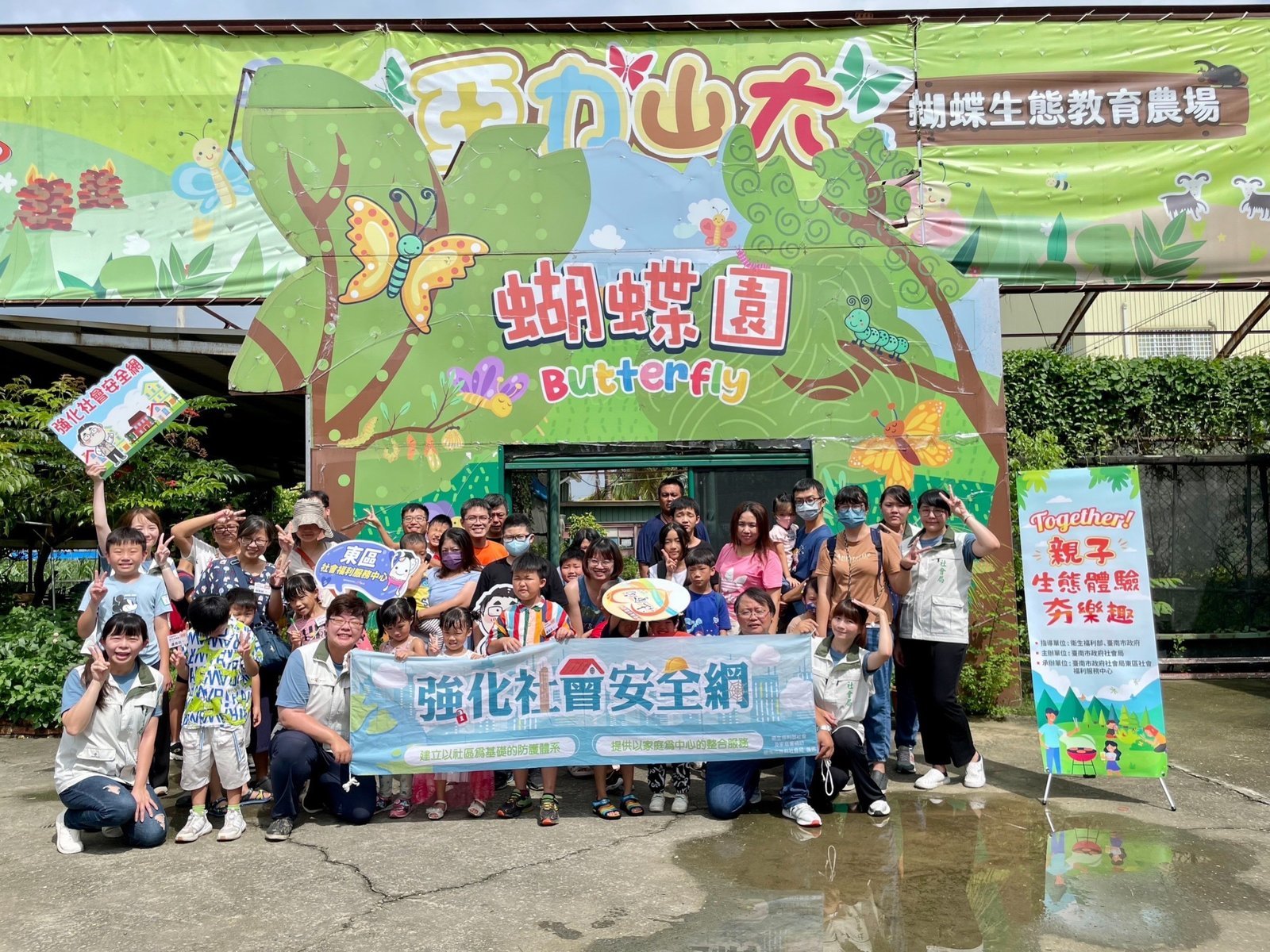 【透傳媒記者杜忠聰/臺南報導】為促進社區親子正向互動及交流,臺南市社會局東區社會福利服務中心於2日在亞歷山大蝴蝶園生態教育農場辦理「Together!親子生態體驗『夯』樂趣」活動,安排昆蟲採集、蝴蝶生態解說等多樣導覽與手作,另安排自助式烤肉午餐,讓親子一同體驗、討論與分享,共有50多名親子共同參與。