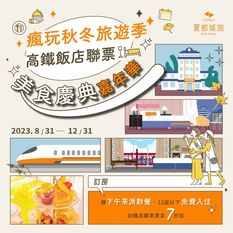 台南夏都城旅安平館集結館內住宿餐飲,九月至十月住宿餐飲優惠豐富回饋活動,相關