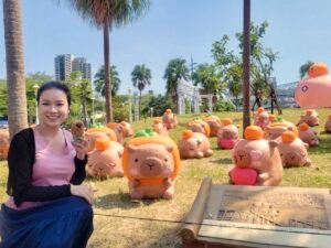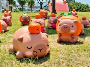 活動首創多個亮點:12 米高水上卡比胖拉氣偶以泡湯造型抱青皮椪柑亮相,入夜後 18:00 起每半小時有 3 分鐘燈光秀(平日至 20:00、假日至 21:00);另有 2 座 5 米陸上氣偶(頂芒果、捧擔仔麵)及 50 隻 3 款造型紙雕裝置,適合親子拍照打卡。