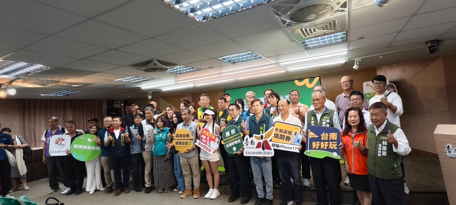 【透傳媒記者杜忠聰/臺南報導】臺南市政府觀光旅遊局24日於永華市政中心舉行「Hole in One!」主題記者會,許至椿等議員、立委服務處代表、觀光公協會及鼎運旅遊集團等貴賓與會,推動高爾夫球運動觀光。