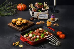 和逸飯店‧台南西門館Cozzi KITCHÉN餐廳於10月25日推出「魔法萬聖晚宴」,今年以「魔法學院」為主題,精心打造30款以上萬聖限定料理,並以自助式Buffet形式登場。此次主廚化身暗黑魔法教授,運用骷髏、南瓜、幽靈等經典元素入菜,其中「費雪教授的暗黑魔法義大利麵」,義式肉醬拌煮墨魚麵,巧妙點綴「眼球」造型蛋料理,搭配特製「骷髏手掌」造型餅乾,宛如暗黑魔法實驗。整顆南瓜化身為「魔法盅」,盛裝金黃燉煮的南瓜燉飯,另外還有「骷髏起司焗通心粉」,以濃郁焗烤結合骷髏頭起司,驚悚又逗趣。12歲以上成人每位1,380元,7至11歲孩童每位750元,3-6歲幼童每位350元,以上費用另加10%服務費,詳情請洽Cozzi KITCHÉN餐廳06-702-6699。