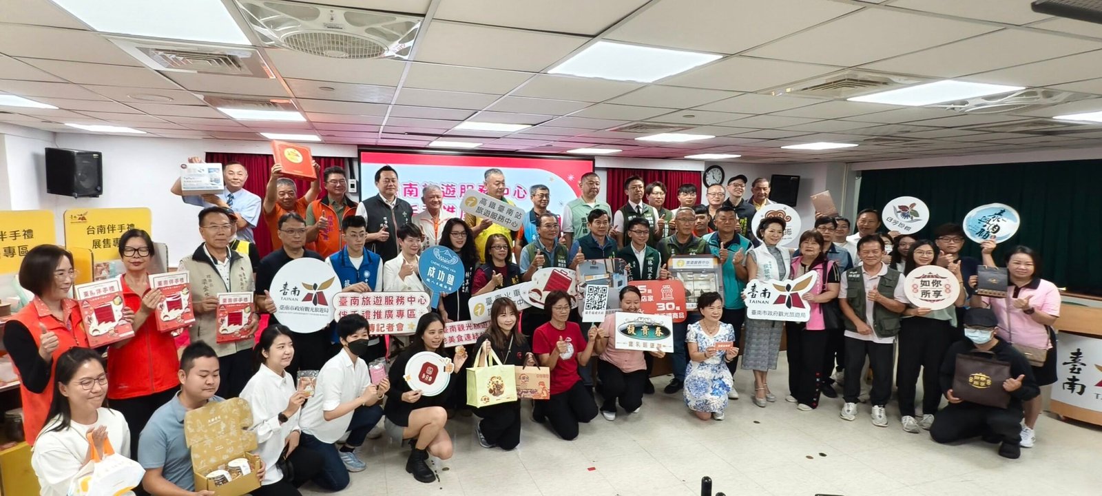 【透傳媒記者杜忠聰/臺南報導】為行銷臺南觀光,臺南市政府觀光旅遊局於臺南火車站及高鐵臺南站兩大交通樞紐的旅遊服務中心,設置「伴手禮推廣專區」,並聯合本市 4 大觀光公協會合作,推薦優質伴手禮品牌。宣傳記者會邀請多位民意代表、公協會理事長參與,共同啟動旅服中心創新服務。