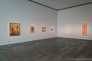 除張大千的經典鉅作,本展亦精選反映臺南地緣特色的藝術創作。展出作品回應了臺南的地緣性及豐富多元的藝術表現,如:郭柏川記錄下府城過往地景的〈臺南運河〉、劉啟祥〈小憩〉、朱玖瑩〈安平鄉土館啟扉致詞〉、許武勇〈臺南普濟殿廟庭〉、沈哲哉〈臺南孔廟〉、曾培堯〈六道輪迴〉、金潤作《觀音落日II》等。本次有別於歷史時間軸線、區分畫會等既有框架,跳脫宗教民俗藝品、寫意文人字畫與南島民族工藝,以更為專精且宏觀的視角看待「美術」的核心,挑選1895年至1950年出生的臺灣藝術家作品,透過不同面向的題材交錯呈現,看見藝術家對土地情感的轉化與表達,展現多元且流動的藝術表現。