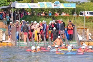 觀光旅遊局林國華局長表示,今年首創水路雙鐵體驗,總共有1,200多名勇者報名,全台民眾報名相當踴躍,今天臺南市觀光吉祥物「魚頭君」還特別擔任活動領航員,為大家加油打氣!最快完成2公里游泳加4公里路跑水路雙鐵體驗的勇者,只花了54分鐘,十分厲害,在泳渡虎頭埤時,泳者們可以欣賞到埤塘山光水色,體驗被湖水擁抱的幸福感;在環埤路跑時,也可欣賞虎頭埤沿途豐富自然生態及細品虎埤八景之美。同時活動現場也規劃「水綠市集」,邀集多家在地品牌與特色攤位,提供優質商品與美食,讓大家運動之餘,也能品嘗在地美味,補充流失的體力。另外,也特別感謝臺南市168產業觀光發展協會贊助蝦餅、新化果菜市場贊助4小時免費停車優惠。
