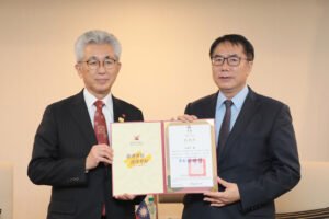 黃偉哲市長在會中特別致贈感謝狀,感謝弘前市於七月丹娜絲颱風侵襲台南後,迅速展開募款支援,讓台南感受到跨海深厚情誼與溫暖。他提到,台南與弘前向來透過芒果與蘋果推動交流,互動頻繁,今年再度品嚐到美味的弘前蘋果,倍感欣喜。此外,黃市長也感念今年四月赴弘前出席櫻花祭開幕時,當地各界的熱情接待,弘前櫻花祭與弘前城的美景更讓他印象深刻,期盼未來兩市持續深化交流,讓情誼更為穩固長久。