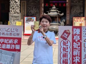 陳亭妃指出,守護市民財產安全是政府責任,亭妃特別發揮巧思,設計「妃妃祈福打詐御守」做為此次歡迎2025乙巳年北港媽祖來到台南的文創小物,共同祈求全民遠離詐騙,加強市民打詐的警覺。