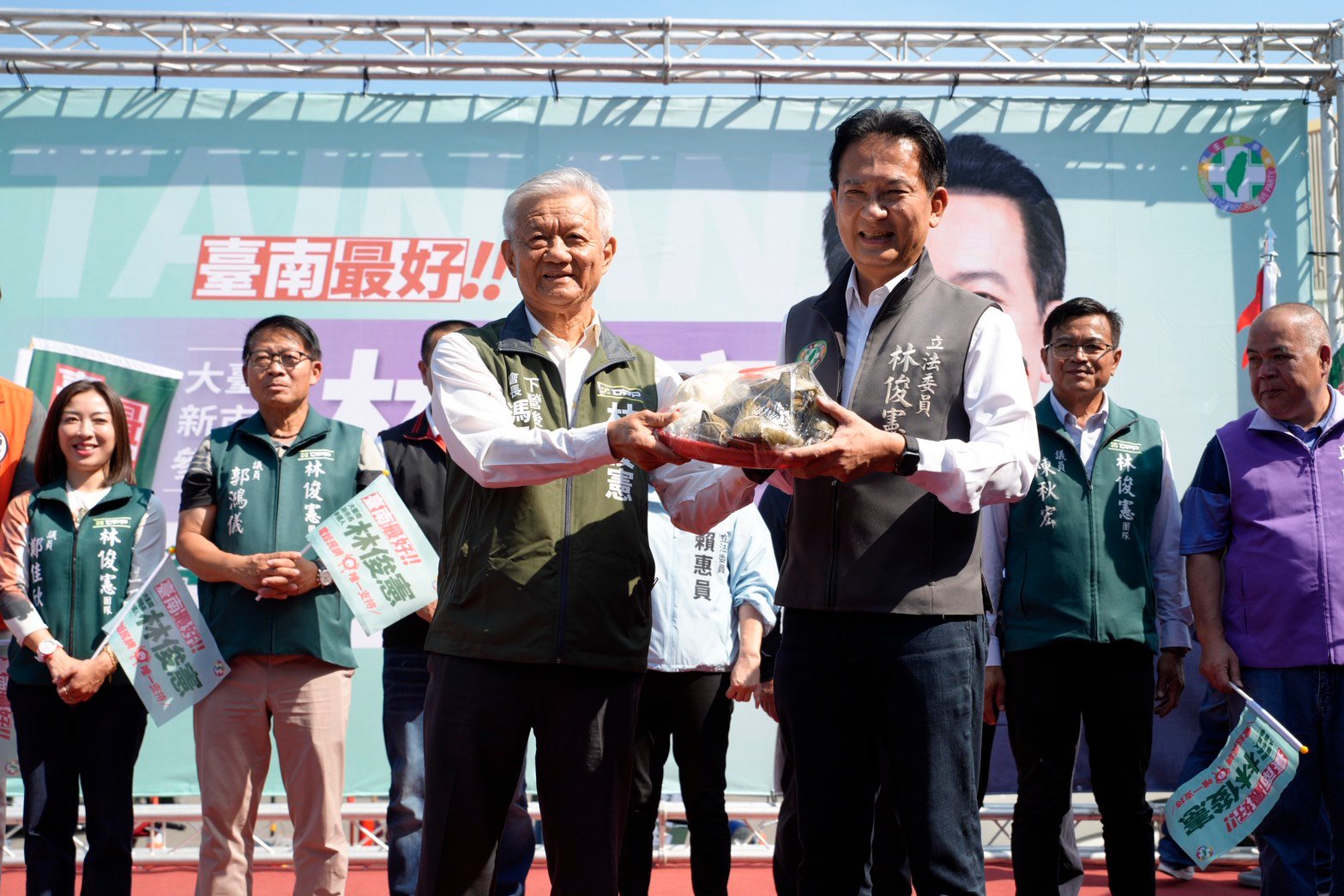 高大成指出,從林俊憲推出的政策就可以知道,他是已經準備好的人,包含孕婦施打RSV疫苗及老人施打帶狀皰疹疫苗,全面保護嬰兒及長輩健康,另外過去賴清德選舉中,林俊憲都是賴清德總統重要幹部,相信林俊憲是最能跟賴清德總統配合,讓林俊憲當選,台南才有更好的未來。