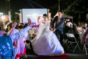 婚禮現場嘉賓雲集,台南市長黃偉哲、立法委員林俊憲,台南市議會議長邱莉莉更率多位綠營議員到場祝賀。