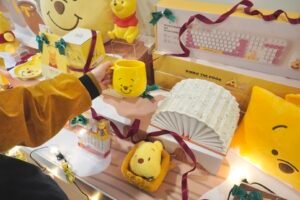 本次快閃店以「飄雪蜂蜜森林」為主題,打造沉浸式冬季場景,雪白造景搭配清甜蜂蜜香氛,讓粉絲彷彿走進童話般的甜蜜國度。現場設有等身大小的小熊維尼與小豬打卡點,成為粉絲爭相拍攝的熱門景點。互動體驗方面,「Hunny Work House 蜂蜜手作區」提供耶誕限定素材,粉絲可親手製作卡套、杯套等節慶小物;升級版維尼主題韓式拍貼機更帶來 6 種主題與 18 款相框,包含耶誕限定設計,定格冬日美好瞬間。