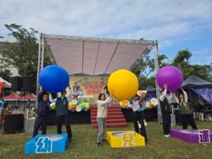 市長夫人劉育菁代表市長黃偉哲出席致意,蔡育輝議員、沈家鳯議員、賴惠員立委秘書徐鈺翎等多位民意代表及地方首長共同參與「大球傳遞」開幕儀式,為小小運動員們送上祝福,期盼孩子們盡情享受比賽樂趣。