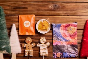 公益禮袋是本次活動亮點,與在地永續品牌「善良」合作,採用 100% 可回收杜邦紙製作束口袋,印上智青阿全手繪「生命的花朵」,象徵勇氣與希望。袋內含點心房主廚廖楷平以豆渣製成的經典薑餅人、應明年埃及法老展設計的木乃伊薑餅,以及智青手烘芒果乾,每袋 250 元,薑餅人與薑餅樹單售每隻 75 元。義賣扣除成本後將捐助德蘭啟智中心,支持其早療、長照等服務。