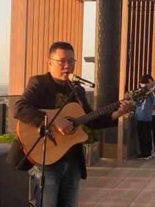 地方文人歌手施伯鋒以吉他自彈自唱,演繹《安平追想曲》《戀戀安平》等經典曲目,用旋律勾勒港城記憶與世代情懷,引發現場強烈共鳴。酒店表示,Sky Bar除常規營運外,積極打造為地方文化交流與城市主題活動平台,本次聚會正是場域共享精神的實踐,助力城市記憶世代傳承。