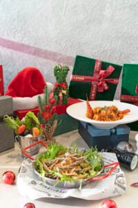 聖誕餐點源自南義「七魚宴」傳統,主打海味風情,由主廚張清峯規劃,即日起至12月28日於充能站餐廳供應,每日晚餐及週一、週五午餐可品嚐。重點菜品包括$120的「聖誕花籃」沙拉、「琥珀光影南瓜濃湯」,$480的炸丁香魚義大利麵,以及$520的香辣番茄蝦仁義大利麵搭茄汁燉菜。