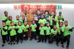 這場見面會中,24名ACC院童以非洲歌謠進行感恩演出,用歌聲傳達對台灣與社會各界長期支持的謝意,現場氣氛溫馨感人。隨後由市長與院童互贈紀念品並合影留念,為這場跨越國界的交流留下美好回憶。
