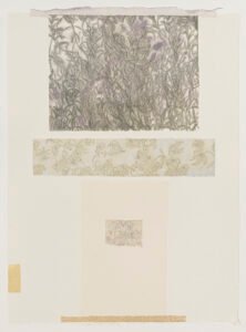 展覽中的〈路徑圖〉系列,將散步時的視線與身體軌跡轉化為圖像痕跡,凝縮時間推移於紙層之間;〈花束〉系列則揉合生活植物意象,如風帶來的記憶片段靜靜綻放。部分屏風式作品與展場空間呼應,讓風的流動延伸至場域,形成物件、空間與身體的敏感交流。其創作不追求具象敘事,而是在紙張纖維的呼吸間,追尋被風喚醒的瞬間,讓觀者在靜觀中感受生命無聲流動的溫柔與力量。