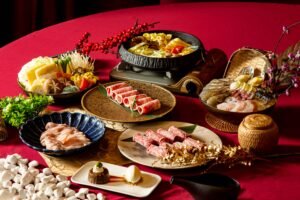 春節餐飲方面,除夕至初三,一樓「捷食藝」餐廳推出多種選擇。適合闔家共享的「中式宴席」每桌 16,800 元,十道佳餚含金沙焗烤龍蝦、椒鹽軟殼蟹米糕等吉祥菜品;「雙人海陸壽喜燒」每人 1,380 元起,匯集鮑魚、和牛等食材,搭配無限供應肉品與時蔬;另有每道 450 元起的節慶菜單及蔬食火鍋,滿足不同需求。