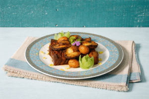 即日起至2月28日,彩豐樓推出六道特色料理:「麻油煎煮龍膽魚」以低溫慢煎鎖汁,黑麻油、老薑與米酒煨香,溫潤不厚重;「黑松露手撕雞」保留雞肉嫩滑,拌入黑松露碎屑,菌香優雅不搶味;「冰花梅醬佛手瓜」脆嫩清新,酸甜平衡;「蜜汁燻魚卷」外酥內嫩,甜香溫和;「鮑魚外婆紅燒肉」慢燉後海味與醬香交融,膠質豐富;「撈汁鮮白蝦」以潮菜酸香提鮮,凸顯蝦肉鮮甜彈性。