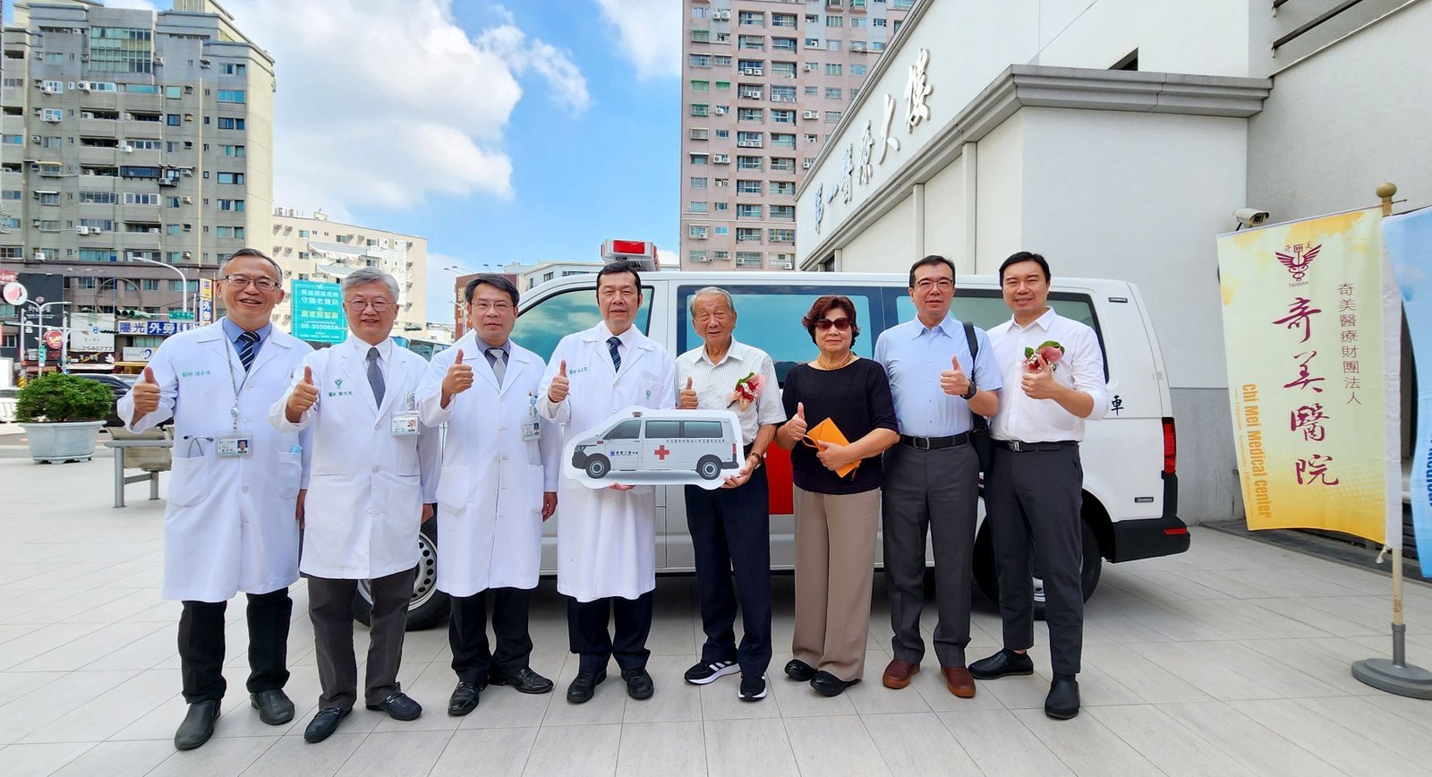 奇美醫療財團法人奇美醫院院長林宏榮指出,救護車是提供緊急救護不可或缺的重要工具,車上不僅有專業救護人員,也配置挽救生命的儀器設備。近年來,臺灣每年至少有數千場大型活動舉辦,救護車已是必備。根據奇美醫院統計102年迄今,已支援過臺南市機關團體舉辦的各項大型活動盛事(如:鹽水蜂炮、划龍舟、臺南古都國際馬拉松等)近200場次的緊急救護工作,保障民眾的生命安全並有效提升救護品質,以便民眾立即獲得妥適的醫療處置。