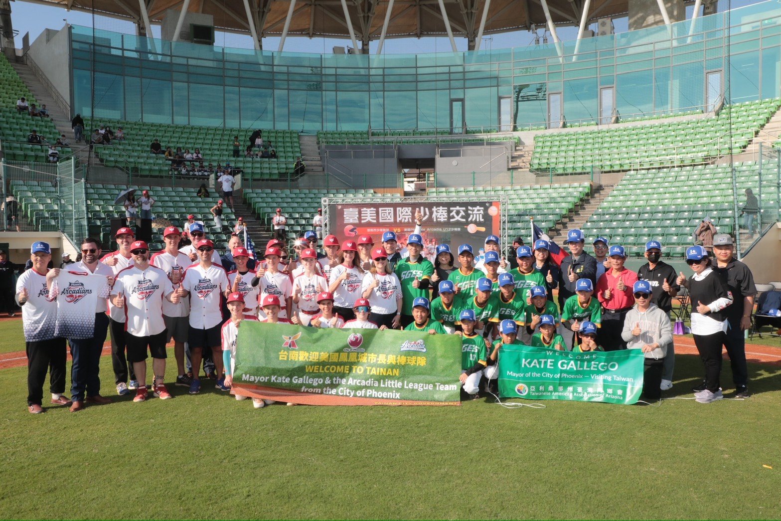 黃偉哲表示,棒球是台南重要城市運動,市府多年來從基層扎根,完善少棒至青棒培訓體系,透過國際交流不僅提升選手競技水準,更累積寶貴國際經驗,助力台南棒球永續發展。美國鳳凰城市長Kate Gallego則指出,台美長期在軍事訓練、產業交流等領域互動良好,此次友誼賽延續雙城情誼,星宇航空即將開航台灣直飛鳳凰城,標誌兩地交流邁入新里程,她也感謝台南熱情款待,誠摯邀請台南市民訪鳳凰城。