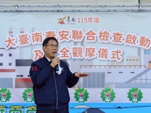 【透傳媒記者杜忠聰/臺南報導】為防範歲末年初高風險行業因趕工、歲修疏忽安全,臺南市政府1/13日在志鋼金屬股份有限公司啟動「115年度大臺南春安聯合檢查」。市長黃偉哲、勞工局長王鑫基及勞動部南區職安中心、各產業園區代表等共同參與,宣示將督促事業單位落實職安防災措施,並關注預防過勞、夜間工作等議題,隨後亦實地觀摩廠內產線安全管控機制。
