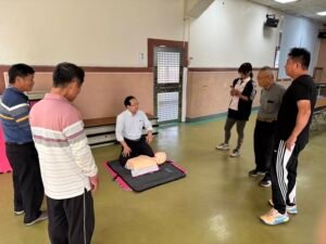 研習邀請成大醫院急診部張志然醫師擔任講師,課程涵蓋心肺復甦術(CPR)理論與自動體外心臟電擊去顫器(AED)實務操作,並透過情境演練加深學員理解與熟練度。所有參與研習人員經測驗合格,均順利取得CPR及AED合格證照,收穫實質技能。