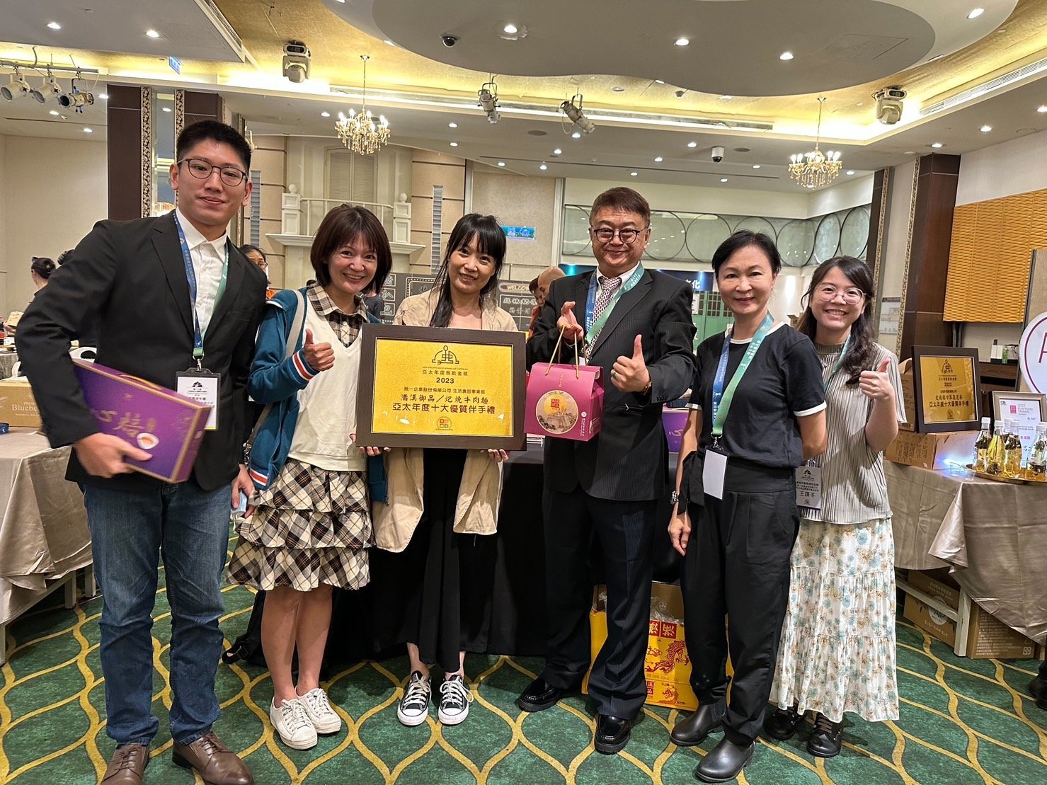 今年滿漢御品更遠赴歐洲比利時參與富有食品界米其林之稱的【iTi國際風味評鑑】,榮獲台灣麵食類唯一最高榮譽「三星獎章」,成功擄獲各國頂尖評審的胃! 不只國際認證,在9月初剛落幕的第十三屆中華美食文化國際高峰論壇,滿漢御品雀屏中選「亞太年度伴手禮」,榮登【2023年度亞太十大伴手禮金獎】,深受論壇發起人-梁幼祥執行長的喜愛(如下圖),完美展現精品牛肉麵的食力!