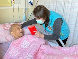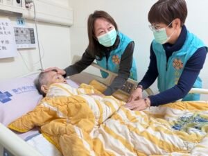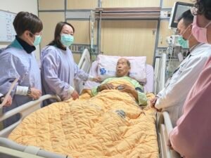 另一位許伯伯雖視力模糊,卻依舊幽默風趣。他握著姚主任的手笑說:「溫度有點高,是不是發燒了?」在眾人關心詢問之際,他才俏皮揭曉:「是家主任的手好溫暖啊!」一句玩笑話瞬間化解病房裡的緊張氣氛,也讓探視現場充滿如家人般的親切與笑聲。陳正榮院長與醫療團隊亦溫聲鼓勵長輩安心接受治療、充分休養,期盼在新的一年裡身體康泰、早日康復。