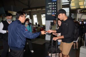【透傳媒記者杜忠聰/臺南報導】農曆新年首日,市長黃偉哲於2月14日前往高鐵台南站視察旅運情況,並向返鄉市民及造訪台南的旅客,致贈「金馬伍吉」春聯及紅包,期盼民眾新歲諸事順遂、平安有錢,溫暖返鄉路途。同時他呼籲,春節連假期間探親出遊,請多利用大眾運輸,減少交通壅塞及尋找車位的時間。
