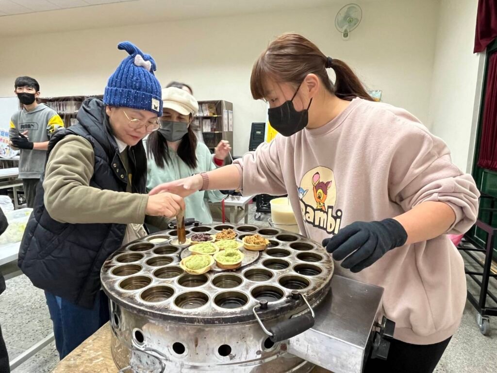 當天另外也特別邀請來自印尼的曾苡姍及來自越南的鐘菁分享母國獨具特色的新年文化。講師增苡姍介紹,印尼新年期間重視「家庭祈福」與「共享甜食」,象徵新的一年平安順遂、生活甜美,許多家庭會準備椰奶與香蘭入味的點心,代表祝福與團圓。講師鐘菁則分享越南過年期間和臺灣一樣,會在年節期間祭祖、貼春聯、發紅包,展現對祖先與家族的重視,特別的是家家戶戶會準備方形或圓形的粽子,象徵天地圓滿。為了讓文化體驗更加生活化,現場也安排手作紅豆餅體驗,讓參與民眾動手感受年節的甜蜜滋味。其中奶油口味加入香蘭葉,濃郁清香瞬間讓臺灣常見的紅豆餅化身為印尼風味點心,讓大小朋友都吃得驚喜又開心,也讓大家在品嚐中體會飲食文化融合的美好。