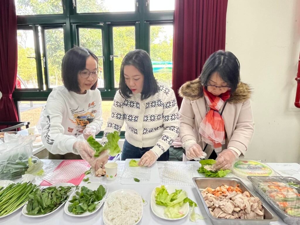 活動現場宛如一場多元文化的味蕾饗宴,新住民姊妹們紛紛端出拿手家鄉菜,除了充滿東南亞風情的印尼沙嗲、越南鮮蝦生春捲、泰式涼拌木瓜絲外,還有來自四川香辣滷味以及過新年不可或缺、象徵元寶的北方水餃等特色料理;各式擺盤五彩繽紛,讓人目不暇給,陪老婆一起「回娘家」的小志說:「看著老婆嘴角的油光和開懷的笑臉,本來擔心老婆想家的心總算放下了。」