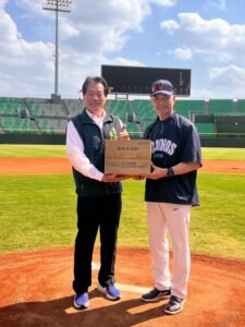【透傳媒記者杜忠聰/臺南報導】韓國職棒NC恐龍隊(NC Dinos)25日於亞太國際棒球訓練中心成棒主球場,與統一7-ELEVEn獅進行閉門交流賽,為新賽季備戰。臺南市長黃偉哲親赴現場為球員加油,期盼雙方以球會友、締結友誼,賽前體育局局長陳良乾代表市長致贈應援禮品。