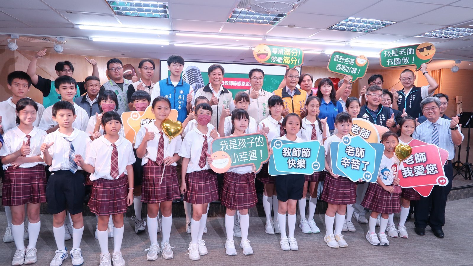 透傳媒記者杜忠聰/臺南報導】為彰顯教師的奉獻,表達對教師的感謝,臺南市教育局今年教師節規劃系列活動,除製播「2023臺南教育之星來透可」系列影片分享師鐸獎獲獎教師教育心路,還以學生視角回饋老師在學生們心中的圖像,製播「我心中的好老師」影片,27日首播記者會,黃偉哲市長、鄭新輝局長與各家長、教師、校長團體齊聚一堂共同祝福老師們教師節快樂!