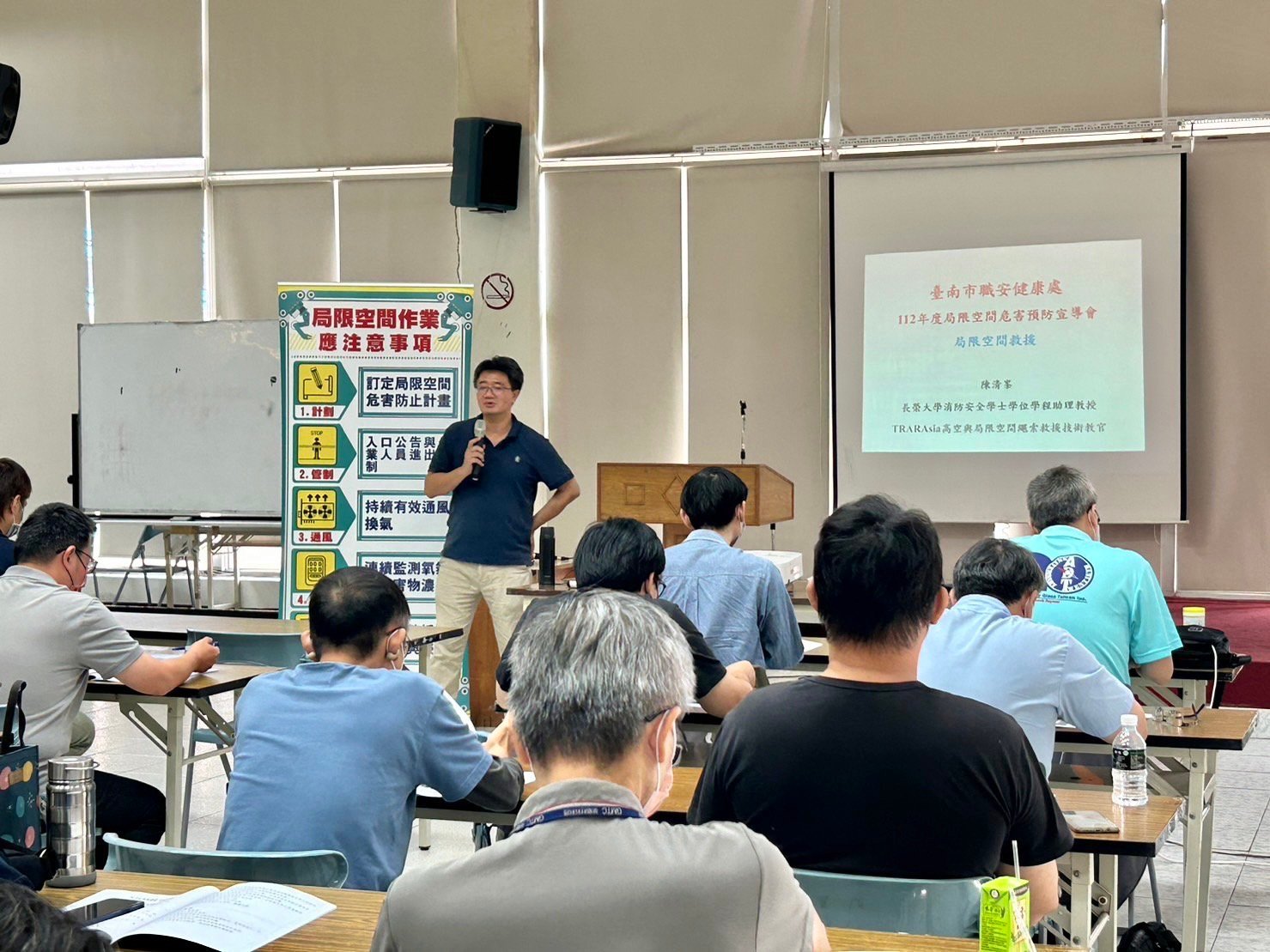 【透傳媒記者杜忠聰/臺南報導】近年來局限空間作業陸續發生多起重大職災死亡事故,引發社會高度關切,南市勞工局於今(09/27)辦理「局限空間作業危害預防宣導會」,邀請長榮大學職業安全與衛生學系戴聿彤教授與陳清峯教授授課,期透過加強宣導及專業訓練,提升事業單位危害預防知能,達到防範於未然,杜絶職業災害發生,落實黃偉哲市長推動「希望家園」的願景。