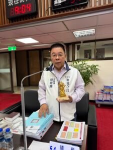 【透傳媒記者杜忠聰/臺南報導】臺南市議會17日繼續審理 115 年度總預算第一次追加減預算案,國民黨籍議員蔡育輝針對「學甲與後壁爐碴案」展開猛烈質詢。蔡育輝現場特別請出關聖帝君神像坐鎮,嚴正質疑環保局內部是否有人替民進黨前中執委郭再欽作偽證,並呼籲台南地檢署主動介入調查,絕不容許非法爐碴案藉由虛假證詞「洗白」。
