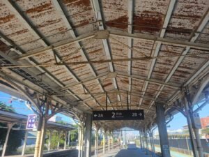 從功能與設計看,第二月臺是唯一島式月臺,具列車調度與待避作用,連接第一、二月臺的地下道是 1936 年改建重要設施,展現當時前瞻思維。在建築工法上,月臺是早期鋼筋混凝土結構,雨棚用臺灣罕見 40 磅(20 公斤)級鋼軌,呈現高超技術與資源再利用智慧,且現存構造可能保有第一代車站歷史構件,具高度保存與研究意義。