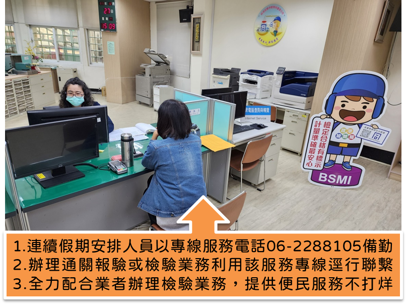 【透傳媒記者杜忠聰/臺南報導】雙十國慶連假將至,為加強服務業者,經濟部標準檢驗局臺南分局於112年10月7日至10月10日安排人員以專線服務電話(06-2288105)備勤,提供便民服務不打烊,業者若有辦理通關報驗或檢驗業務之需求,或有緊急業務需要處理或查詢,可利用該分局服務專線逕行聯繫,全力配合業者辦理檢驗服務。