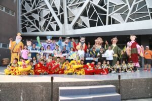 踩街隊伍抵達文化中心後,舉行慶生儀式,八仙大型木偶隨主題曲起舞。臺南市長等多位代表到場共襄盛舉。開幕儀式後,系列演出精彩不斷,多所國小帶來「庄頭故事箱 —— 行動劇場」,壓軸演出《誰偷走了阿媽?— 阿閔的平安信》感動眾人。