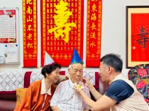 吳龍雲爺爺為陸軍少校退役,與配偶同住,夫妻感情融洽、相互扶持,子女皆工作穩定,家庭幸福和樂。雖已屆百歲高齡,身體依然硬朗,平日散步運動,作息規律,個性溫和,且長期熱心公益,曾捐資設置路燈回饋鄉里,深受地方肯定。吳爺爺表示,感謝退輔會長年對榮民的關懷與照顧,以及榮服處用心安排的慶生活動,讓他倍感溫暖。