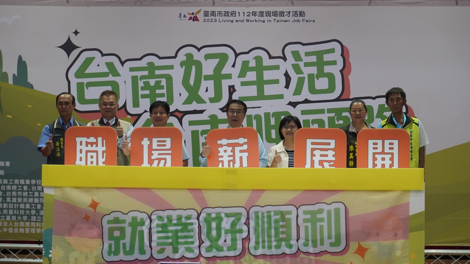 今日就博會由市長黃偉哲、勞動部勞動力發展署雲嘉南分署長劉邦棟、慈幼高級工商職業學校校長陳素貞、勞工局長王鑫基、台南市產業總工會理事長宋照濱、臺南直轄市總工會理事長黃江福、大台南總工會副理事長陳美靜、社團法人台南市勞工志願服務協會理事長梁志男、台南市中小企業榮譽指導員協進會會長李航、台南市時尚造型規劃設計職業工會理事長方藝錡、崑山科技大學職涯發展中心主任邱韋丞及長榮大學職涯發展中心助理蔡彤琳及林俊憲立委服務處特助王世運等貴賓共同蒞臨現場,希望藉由就業博覽會的媒合平台,祝福求職者在台南呷頭路、過好生活。