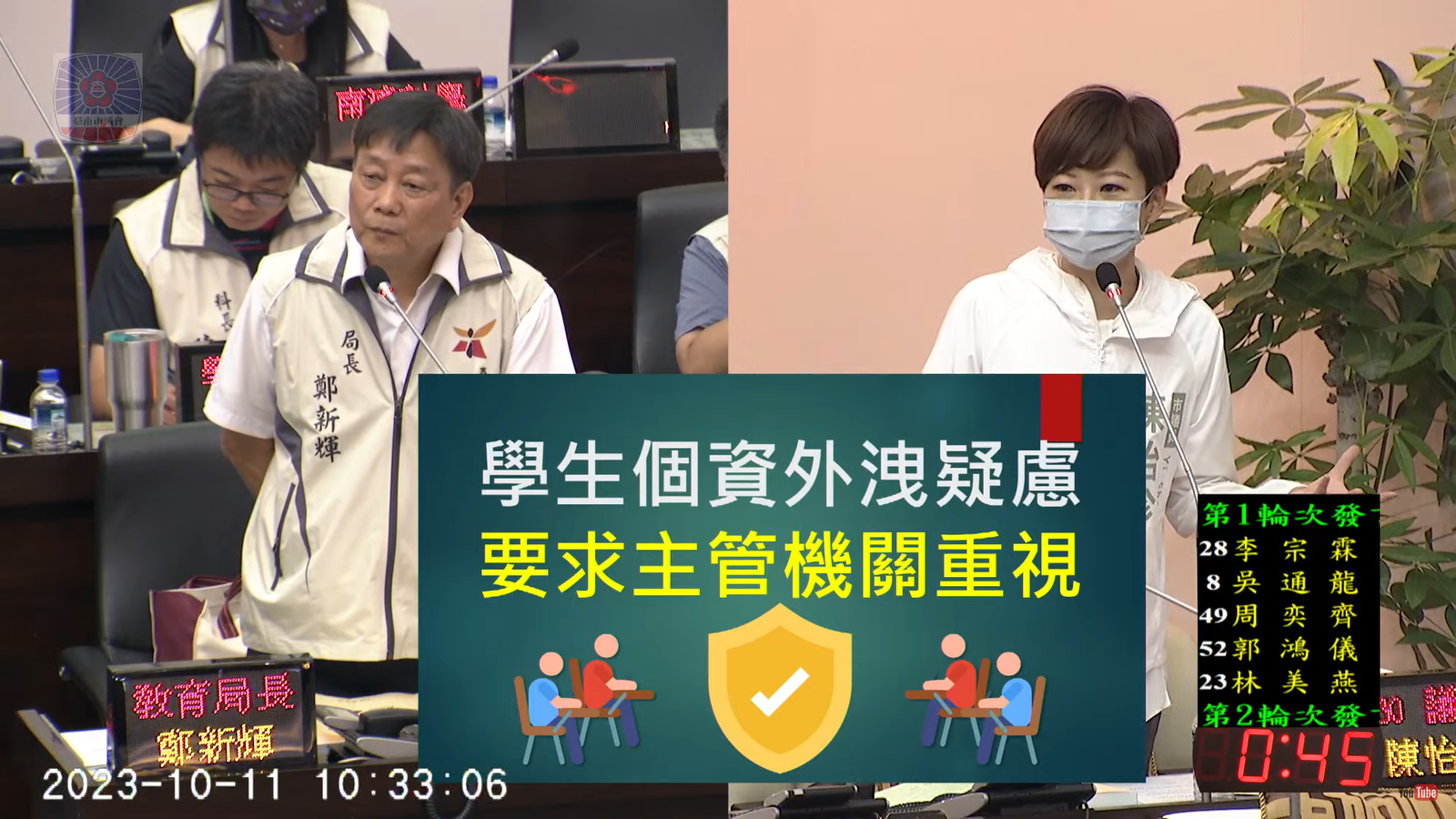 市議員陳怡珍籲重視學生個資外洩疑慮