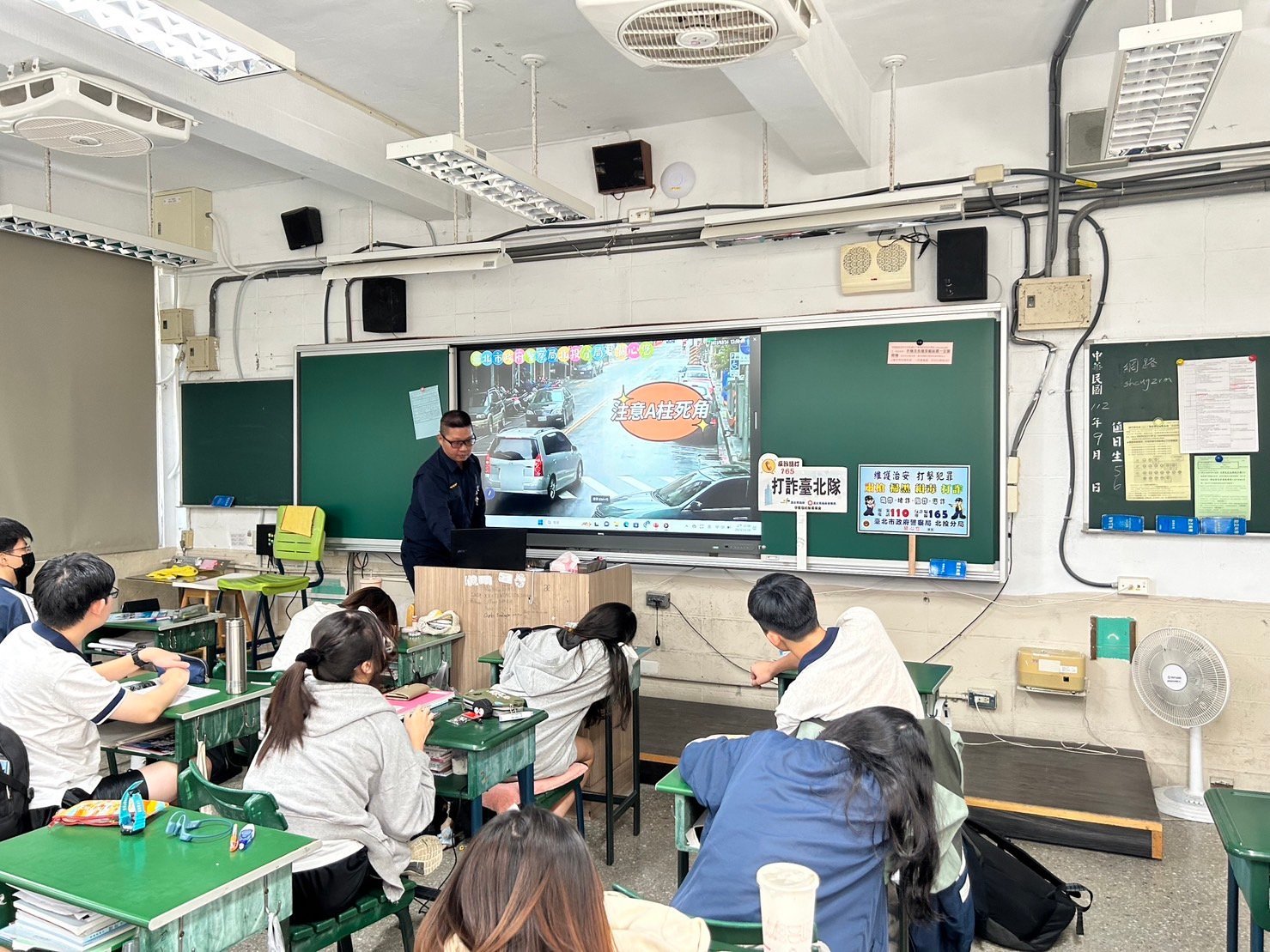 北投分局前進中正高中,宣導學子分辨詐騙、向毒品說不。(圖/北投分局提供)