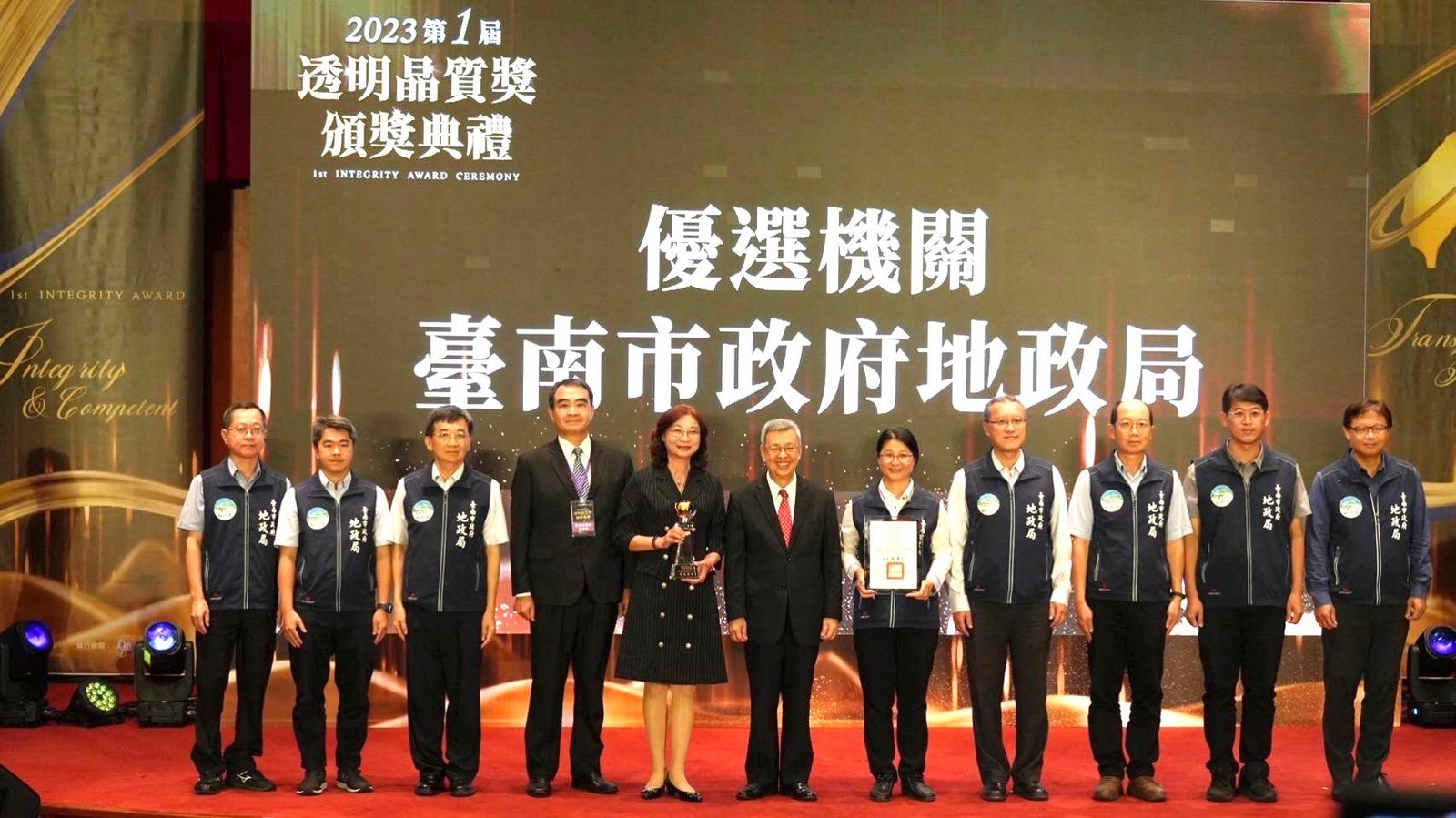 【透傳媒記者杜忠聰/臺南報導】臺南市政府地政局榮獲由法務部辦理第1屆「透明晶質獎」「創新廉能措施」類「優選」肯定,在全國31個機關脫穎而出,頒獎典禮於112年11月8日假國家圖書館國際會議廳舉行,由行政院院長陳建仁頒獎。